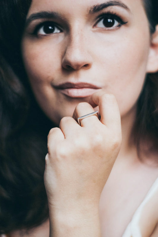 ROSE GOLD RING WITH WHITE BLACK NATURAL ZIRCON