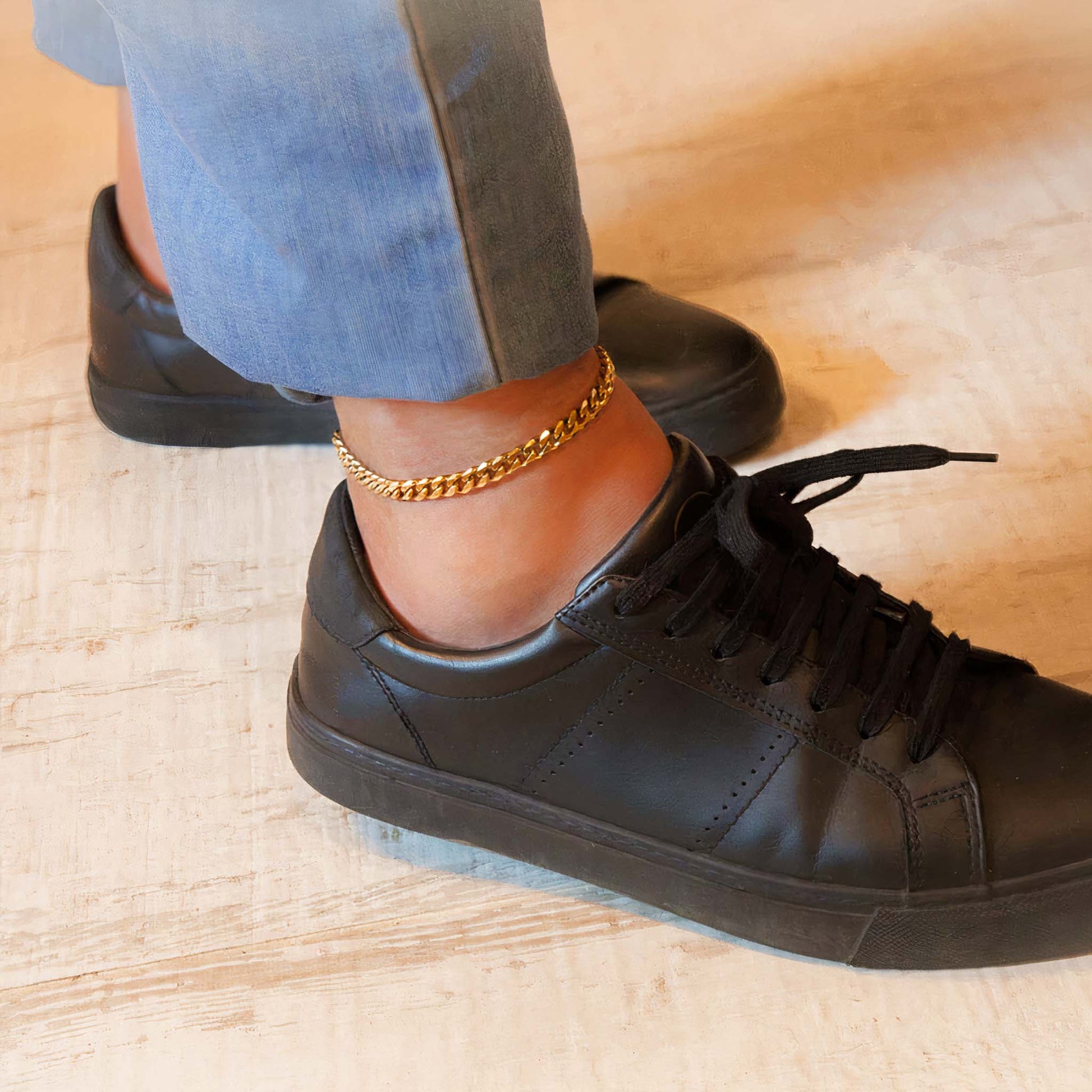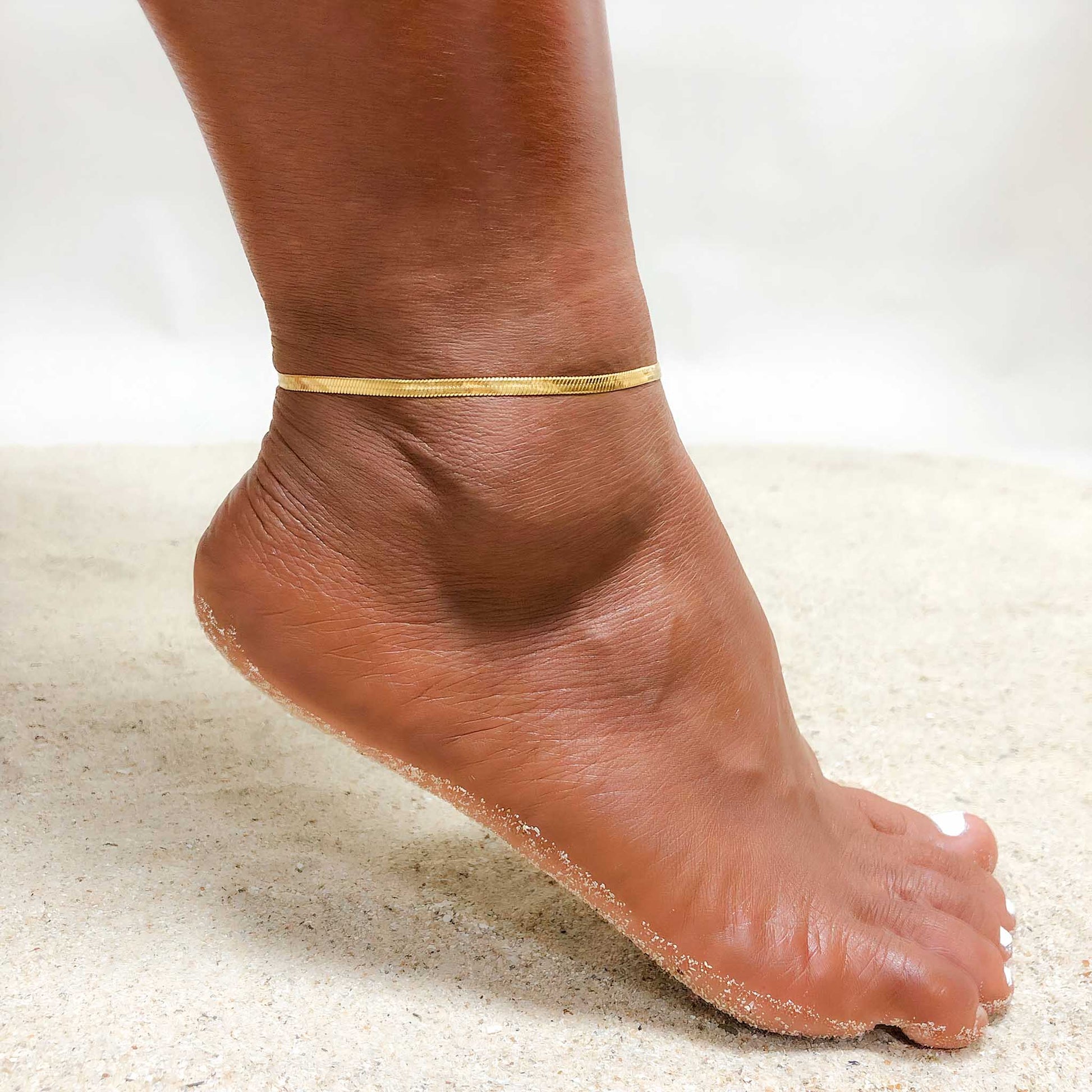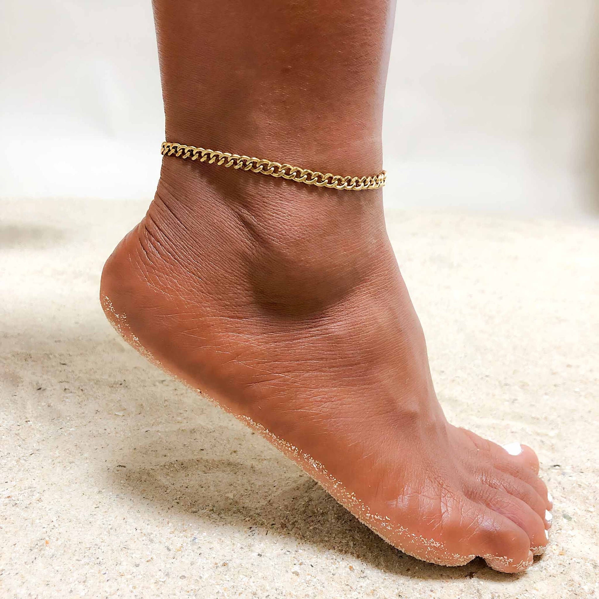 Summer fashion style with this delicate set of two chain anklets: offers curb and snake chains layered together in an elegant look that will complete any outfit. Anklets are 100% waterproof and tarnish-free.