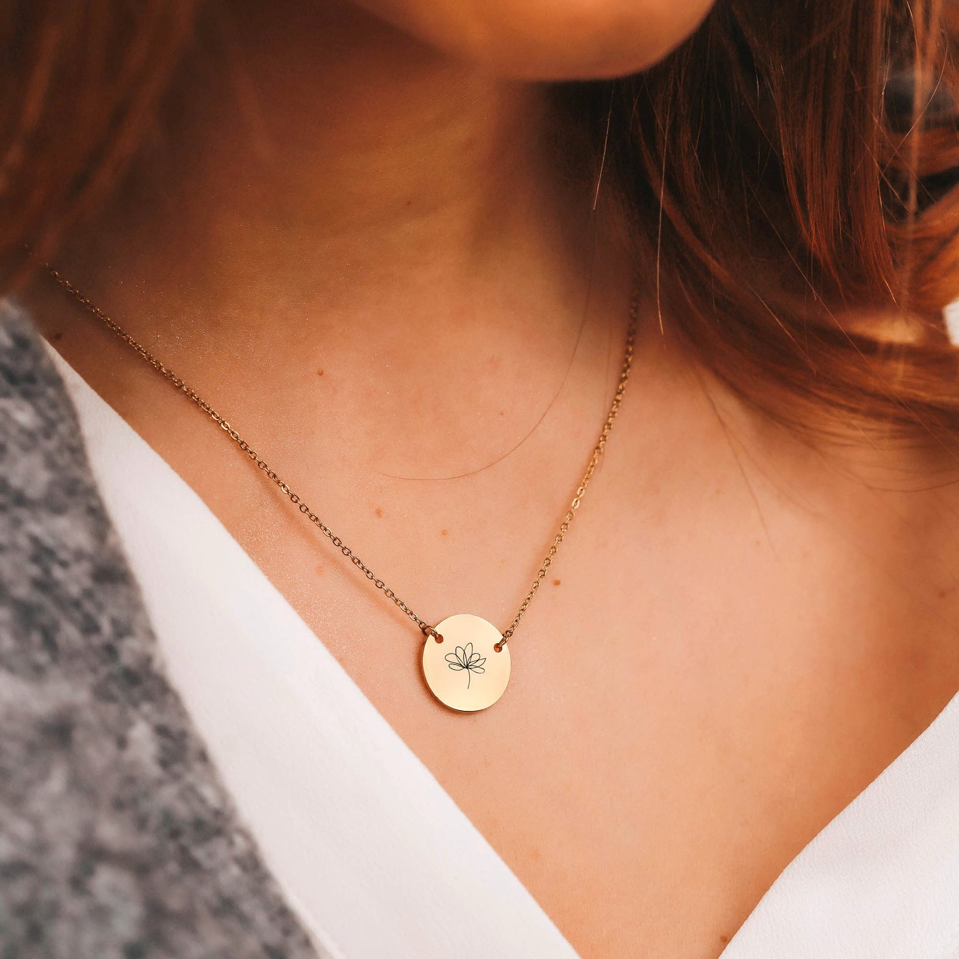 Personalized Birth Flower Necklace, choose from 12 different flowers! It's great for layering, a wonderful minimalist piece. It's a unique and meaningful gift to anyone.