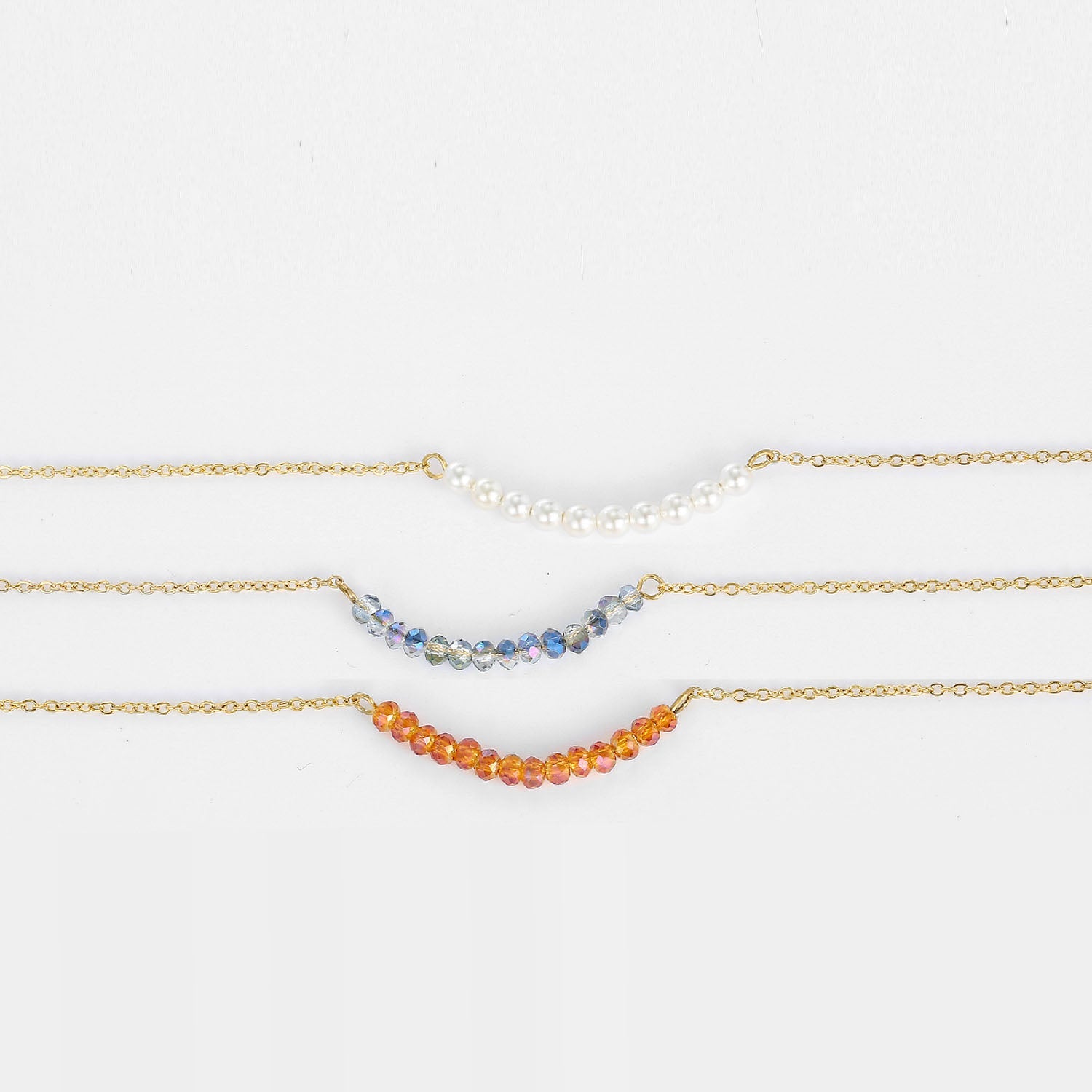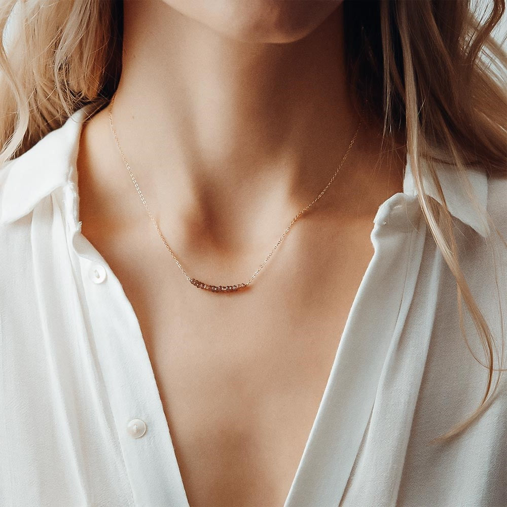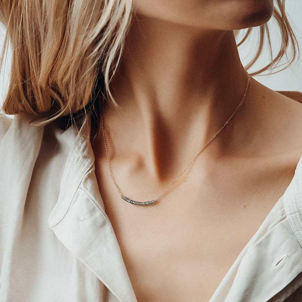 This classy and stylish minimal crystal choker is the ideal present for jewelry lovers or yourself. A few stone selection will add an impeccable touch! The minimal crystal choker comes with your choice of stone tiny pearls, peach or grey labradorite stone. Looks perfect alone and can be stacked together with other necklaces flawlessly.