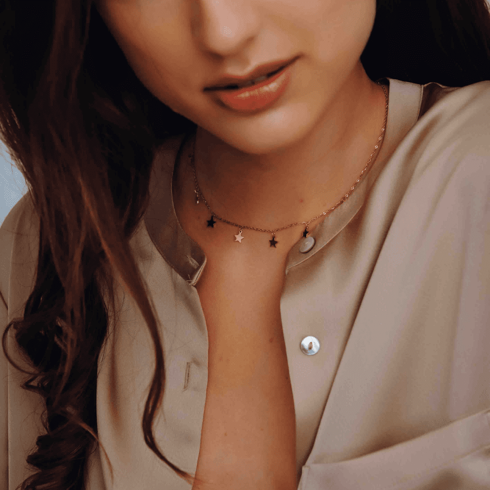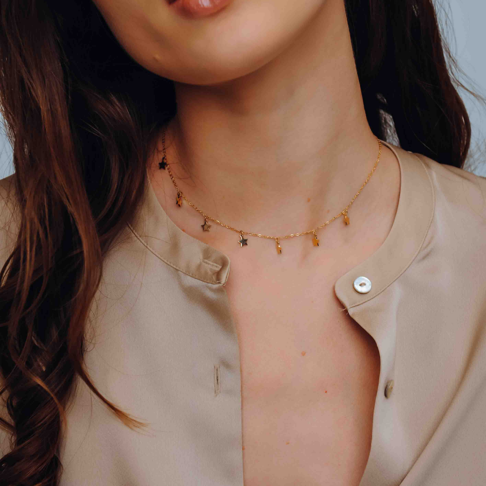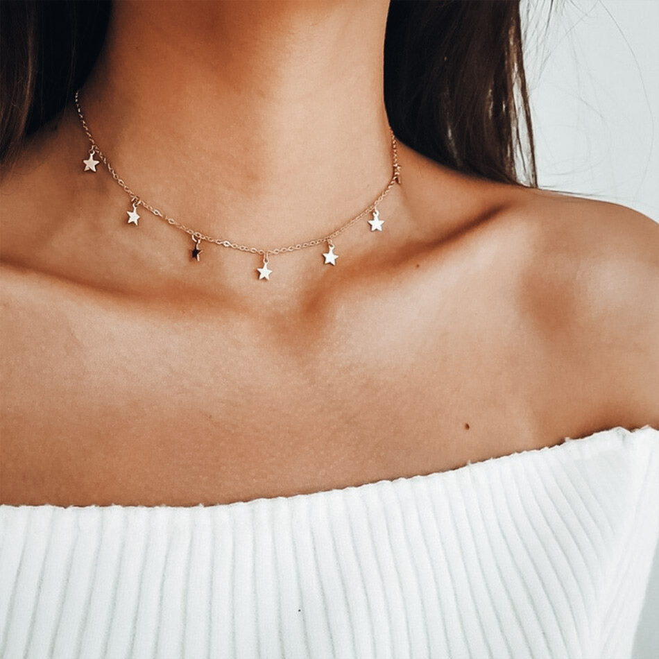 Our star choker necklace is a great layering piece for those who love stars. A classic look our multi star necklace has been reinvented as a choker. On-trend and ultra-elegant, this minimalist choker will instantly update your look.